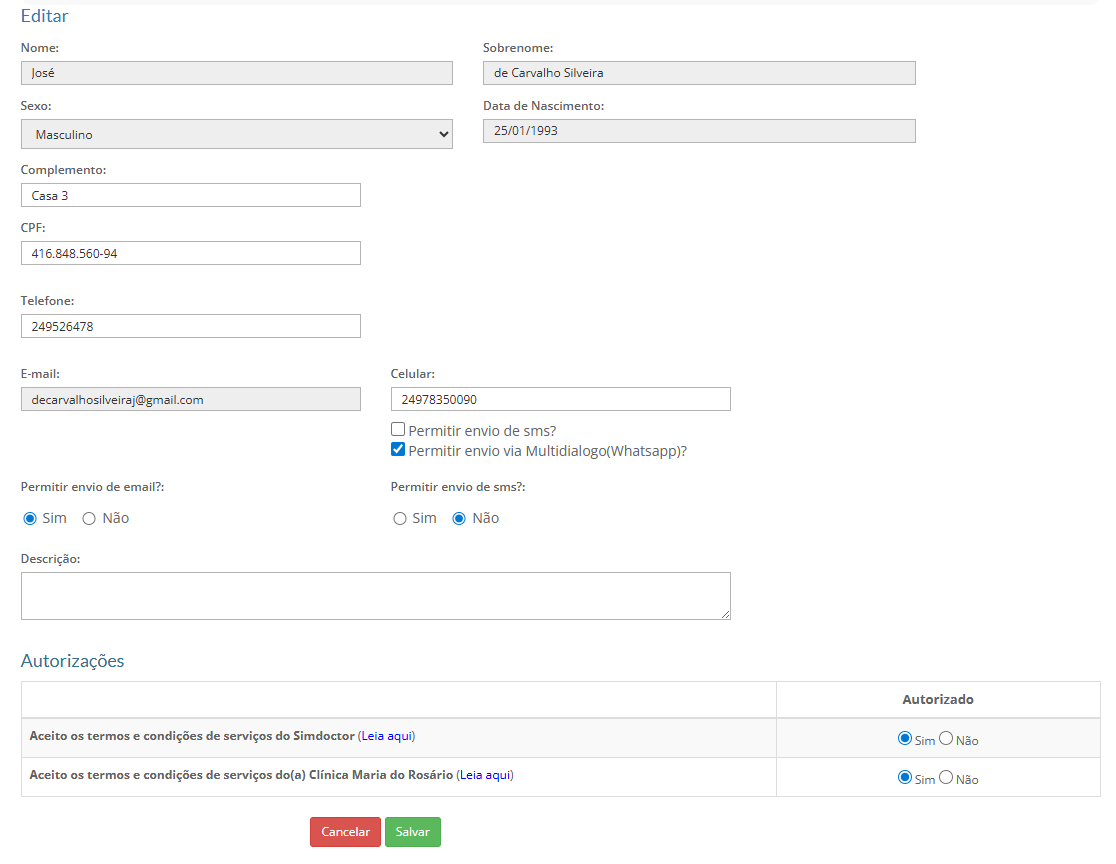 ? Dica: manter seus dados sempre corretos garante que você receba lembretes de consultas e informações importantes da clínica.