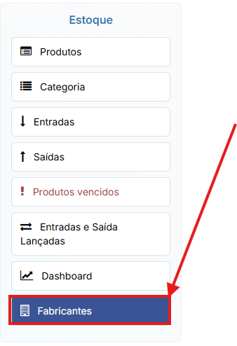 Para cadastrar os fabricantes na plataforma +Simdoctor. Clique na aba Estoque.