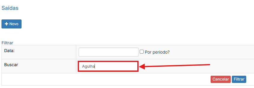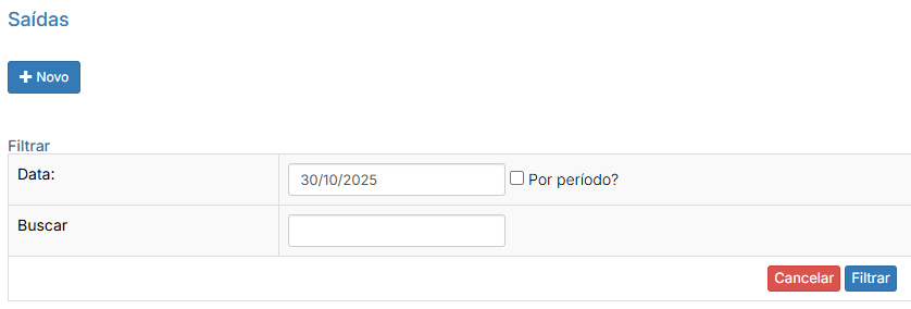 Buscar: campo para pesquisar saídas por nome, tipo ou outras informações.