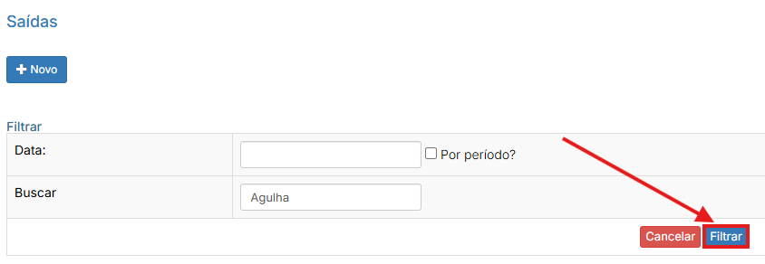 Para adicionar uma nova sáida, clique no botão azul Novo.